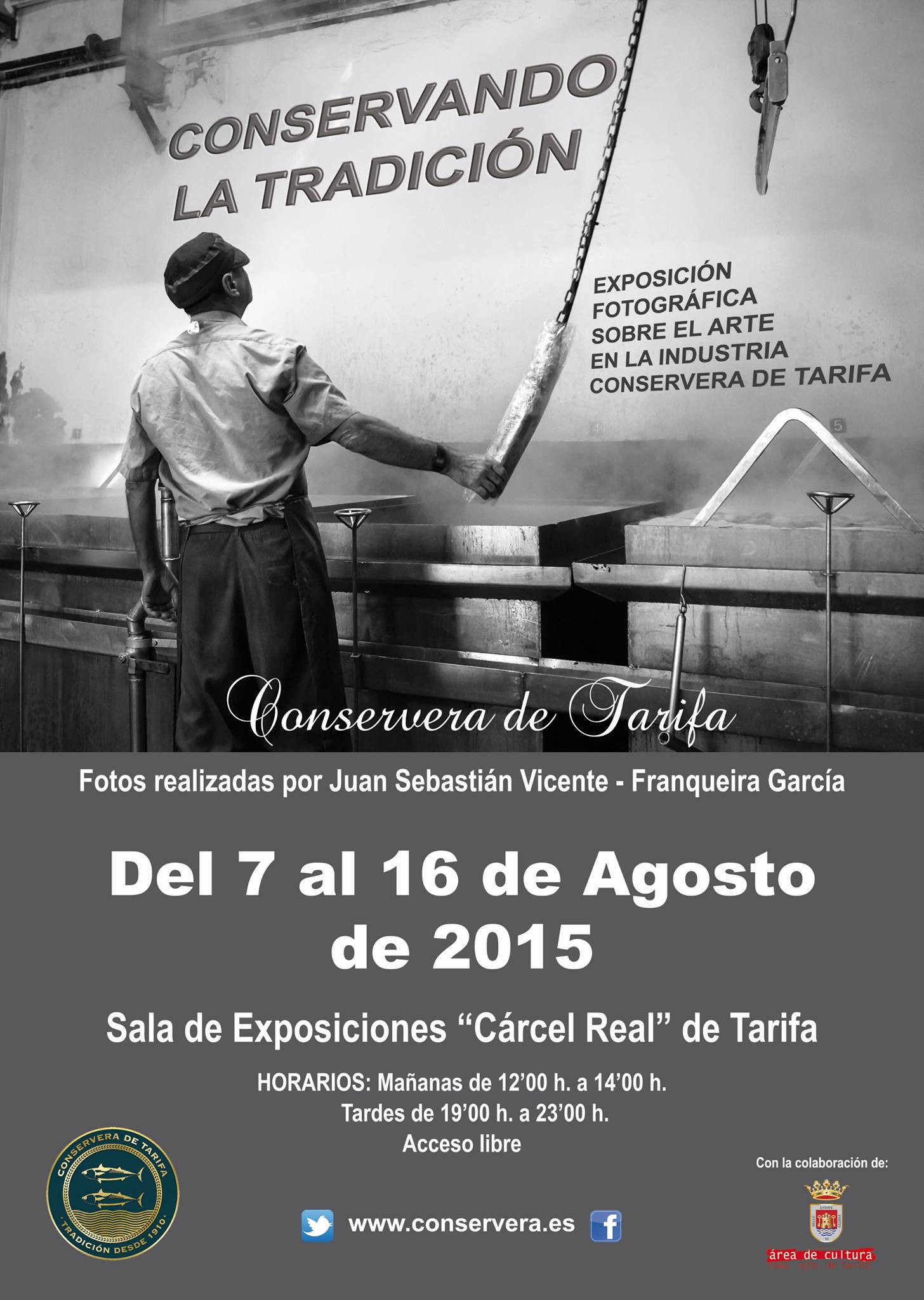Conservera de Tarifa, representante de una industria vinculada desde siempre a Tarifa y a sus gentes, conocida a nivel nacional e internacional, recoge el testigo de las más de 10 fábricas de conservas que llegaron a existir en la localidad. “Conservando la tradición” supone un trabajo realizado entre los años 2012 y 2015, compuesto aproximadamente por unas 70 fotos, que transmiten que en este entorno, con alegría, artesanía, experiencia y tradición, se obtiene un producto único. La exposición cuenta además con una sala con reproducción de vídeos y fotografías, de distinta índole, relacionados con la industria y la historia conservera. El Ayuntamiento de Tarifa y el Área de Cultura del mismo han cedido el espacio de la “Cárcel Real” para la exposición.